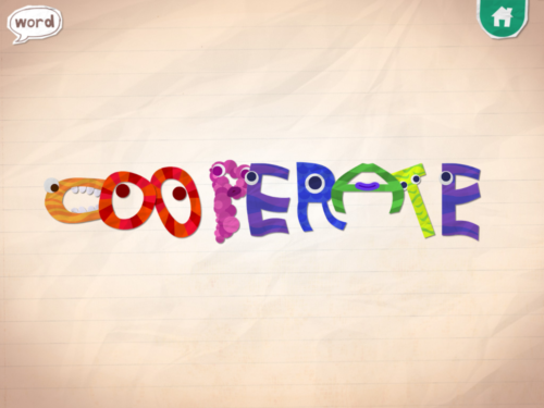 但是二隻小怪獸通力合作,就可以把板子搬起來囉~~原來這就是「COOPERATE]」的意思啦!!是不是設計的很可愛!!