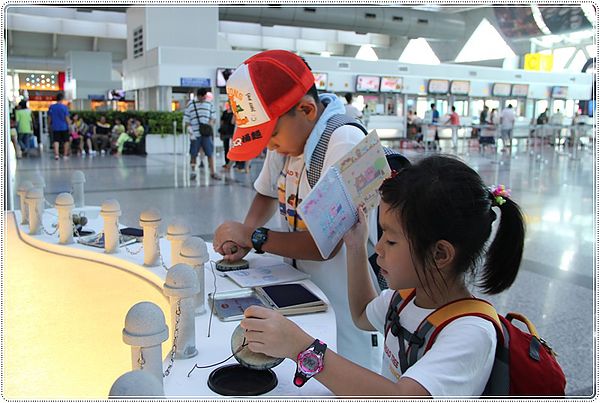 到了出境大廳又看到紀念章了,崴崴真的是養成走到哪、蓋到哪的習慣了!反倒是阿雅,常常忘記帶蓋章本子~