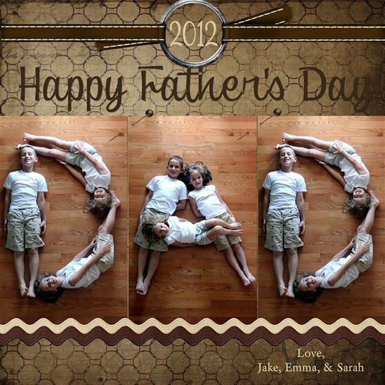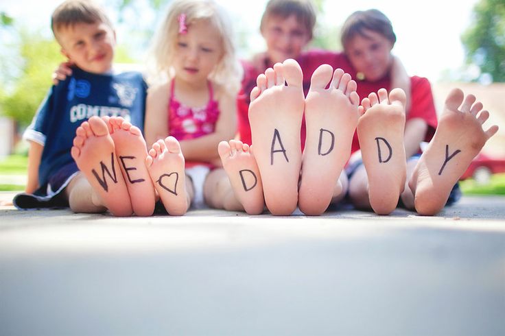 用彩色粉筆在空地上寫好要跟爸爸說的話、配上圖案,再讓孩子躺在地上擺姿勢,你可以用拍立得相機拍攝、或直接用手機拍好傳送給孩子的爸,很窩心喔!