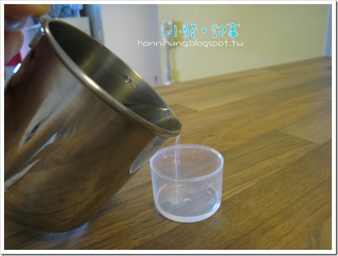 Step 8:最後,再用糖漿的小量杯,倒水給小朋友喝。
