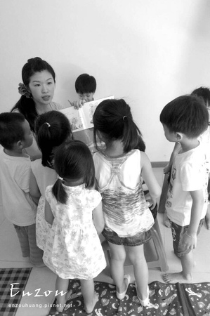 在決定與媽媽們舉辦說故事的聚會前,我去參加了幾次台灣圖書館例行舉辦的聽故事活動,大部分負責說故事的都以「媽媽或阿姨」自稱,但用心的程度絕不亞於專業的老師,在觀摩的過程中,我也試著去模擬自己說故事的現場,當然,對沒有幼教經驗卻滿腹熱誠的我,「道具」的準備當然是不可少的囉!