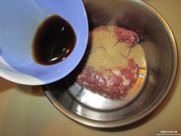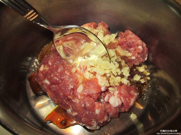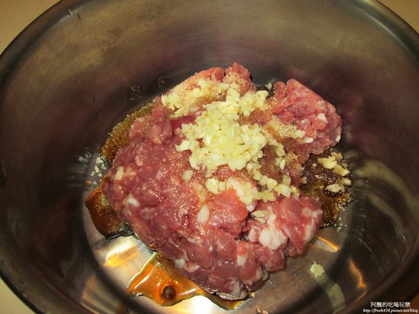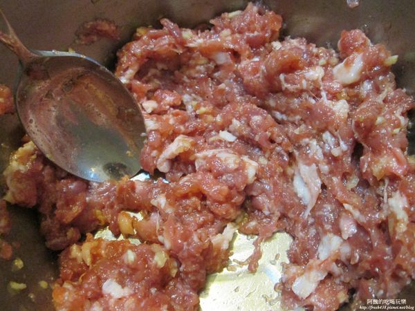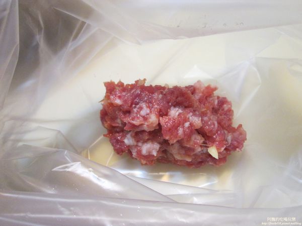 (阿醜選用黑毛豬的梅花肉部位,請老闆用絞肉機絞兩次,比較細緻)