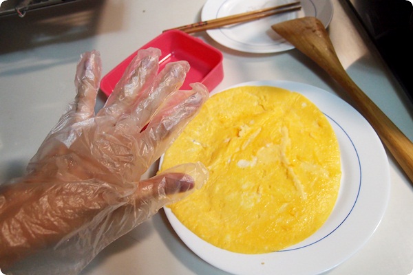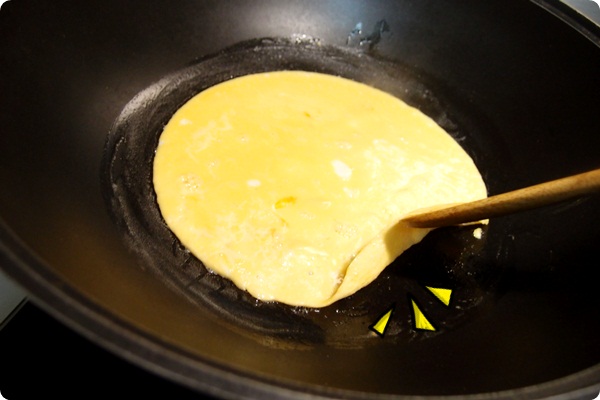 找個平盤將蛋皮順勢從鍋內倒出~還有很久沒出現過的手扒雞手套