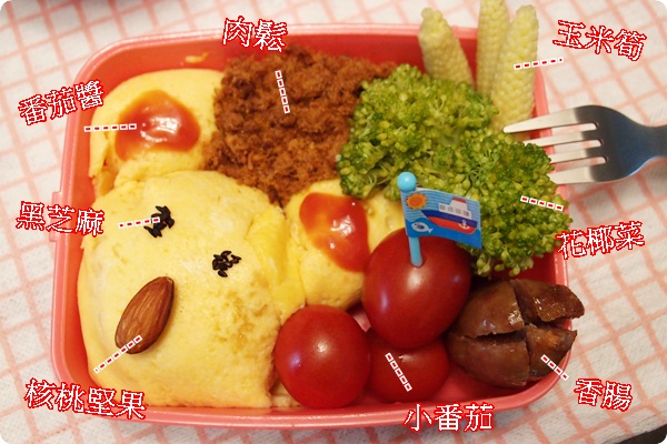 待我回頭檢視,熊耳朵不見了~肉鬆沒了!玉米筍剩半支~番茄嗑個精光!