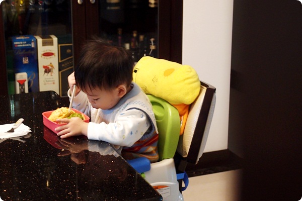 平常用餐都會自己扒個半碗就非常灑脫的脫下圍兜兜說〞吃飽〞要走人