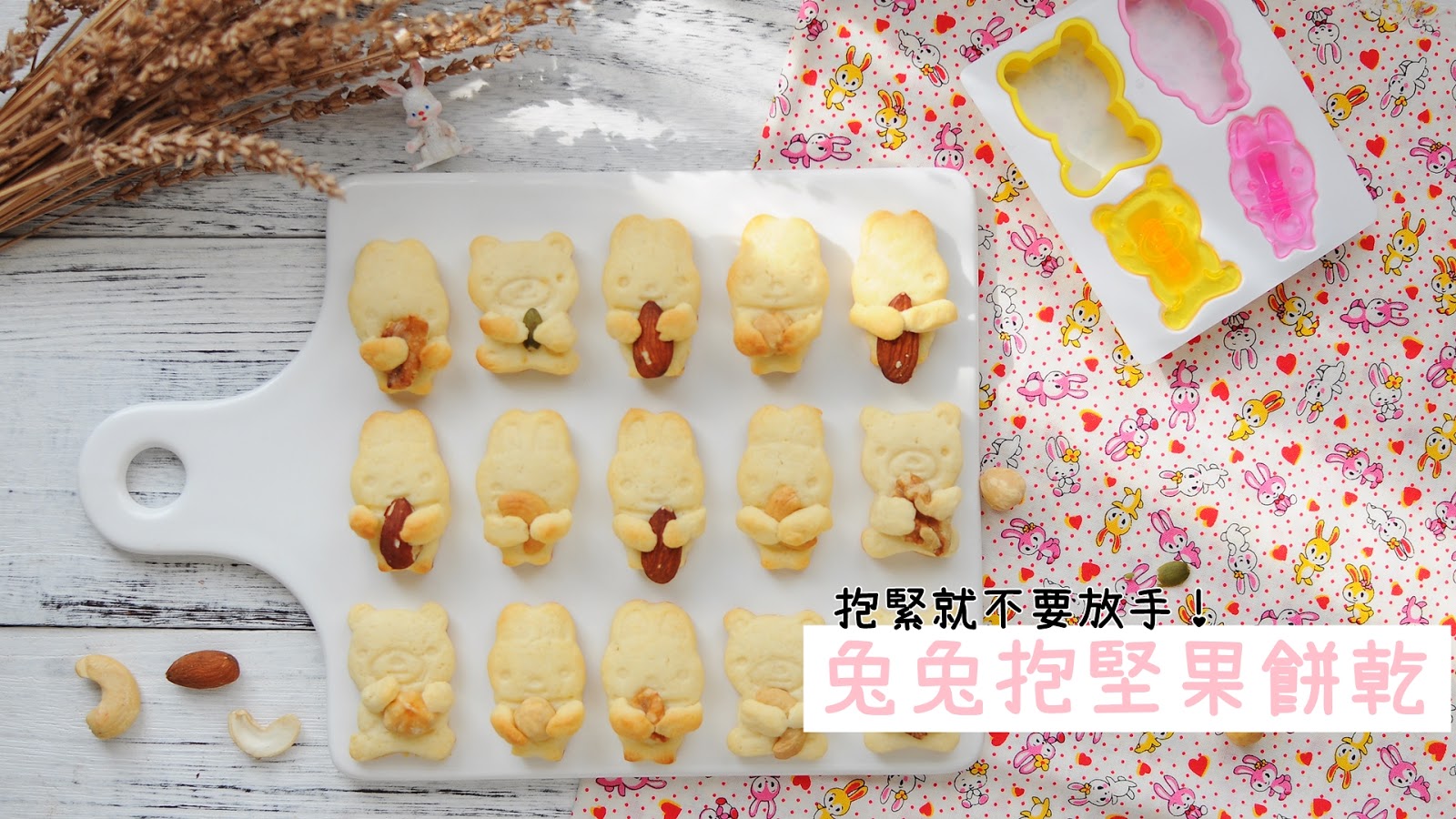 烤這個餅乾最令人擔心就是兔兔們會在烤箱裡中途放開手,還好她們都很hold得住啊,開心。因為復活節將至,想要推出兔兔主量料理,所以在大創買了餅乾模組,它原本是沒有小手的,我用別的模具製作再加上去。如果你家裡有其他動物或卡通人物模具,也可以試試幫它們加手再抱點甚麼,蠻有生命力的。