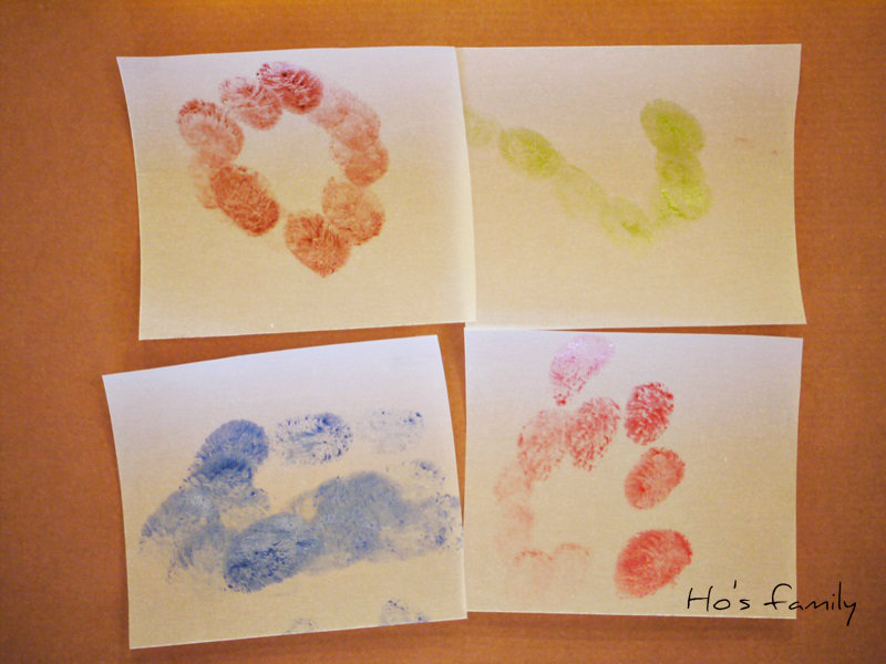 1.在描圖紙上蓋上紙印。說到蓋章,小孩最樂了!