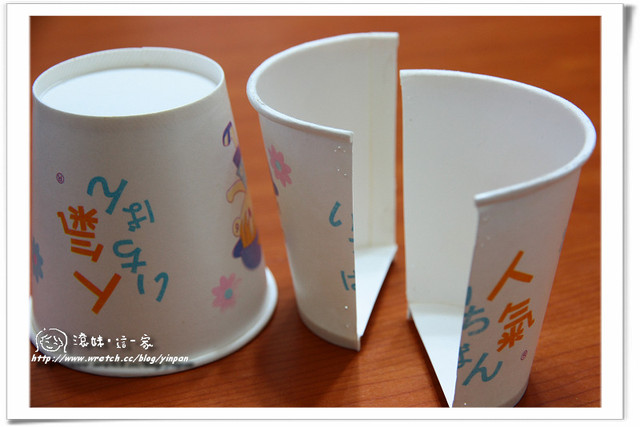 將六個紙杯分別從中間剪成兩半。