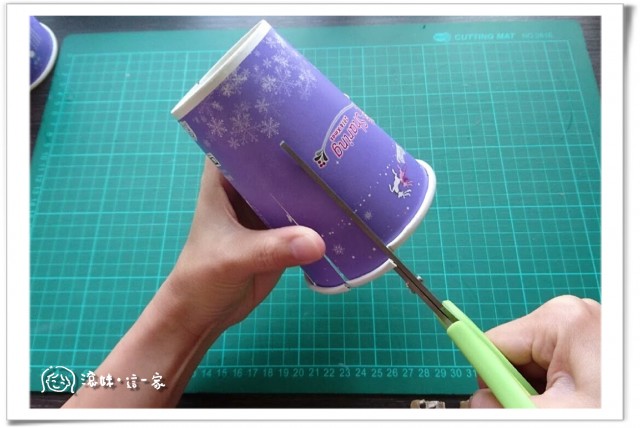 步驟2:用剪刀將紙杯剪出等寬的花瓣狀,用鉛筆將花瓣往外捲曲後,再用剪把紙杯邊緣修成想要的形狀。