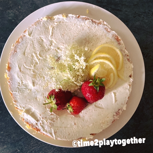 7. 最後放上接骨木花、檸檬片和草莓裝飾。