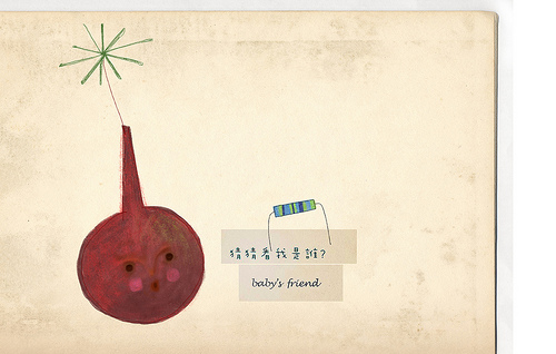 最後,再取一短鐵絲(要粗一點的喔),上頭繞個幾圈,放上寶寶出生的照片..就完成了~~