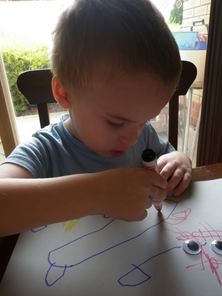 家長可以在一張白紙上,貼上幾對活動眼睛貼紙做為畫畫的引導,先吸引孩子自行作畫的興趣,再藉著活動眼睛的引導,幫助他們開頭,卻又不限制孩子自由發揮的能力,真是一舉數得。
