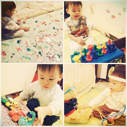 要玩拼圖就要把扮家家酒收好,同個時段不可同時出現2種以上的玩具