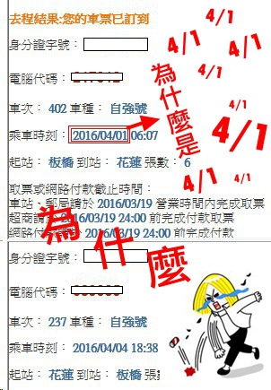 就在要出發的前一週,光亮家要去取票,卻發現.....登愣!!為什麼訂的票提早了一天?4/1愚人節,這輩子我從來沒有像現在這麼想貓自己十拳的!