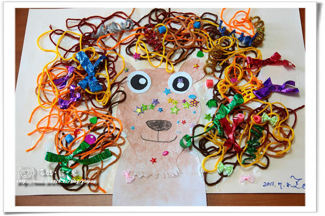 妹子可能覺的獅子的臉太單調了!~~於是在獅子的臉上貼了許多星星貼紙,