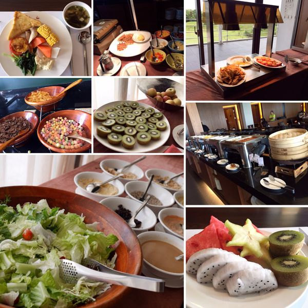 早餐是採Buffet自助式,菜色選擇不少!中西式菜色都有,現做鬆餅/蛋包、現煮擔仔麵/米粉、粥品小菜、法式土司、麵包、豆漿、牛奶、果汁、咖啡…等等。