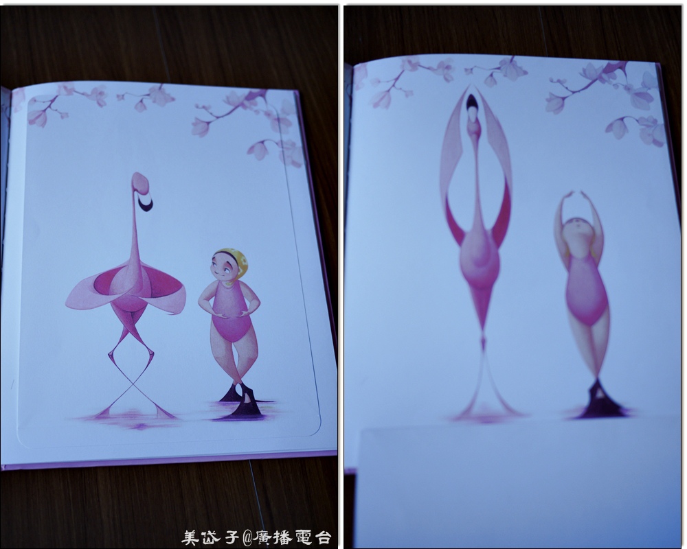 很喜歡這本書的畫風與創作,小翻頁或展開頁面的設計,讓人期待隱藏在頁面下的畫面,也因為好奇促使讀者繼續下去,當然這樣的安排是有巧妙設計過的,若是從頭至尾都是這般,讀者可能會抓狂吧~有道是,過與不及都不好!動動手、動動腦,看繪本也能欣賞優美的芭蕾舞姿,想要跳芭蕾嗎?跟著紅鶴與拉拉,相信孩子也能快樂的跳出動人的舞姿