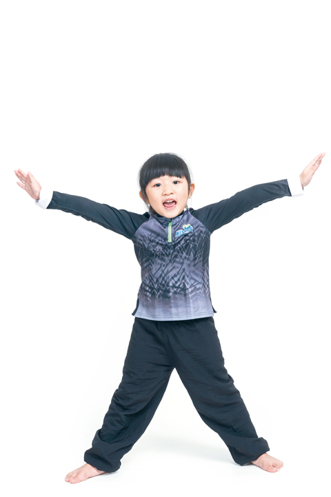 體能訓練:跳躍與小步距、大步距的動作反覆轉換,以及觀察春節期間的鞭炮、宴會、貼春聯等情景,融入功夫組合當中,透過揣摩、模仿,帶孩子快速認識功夫的基礎。