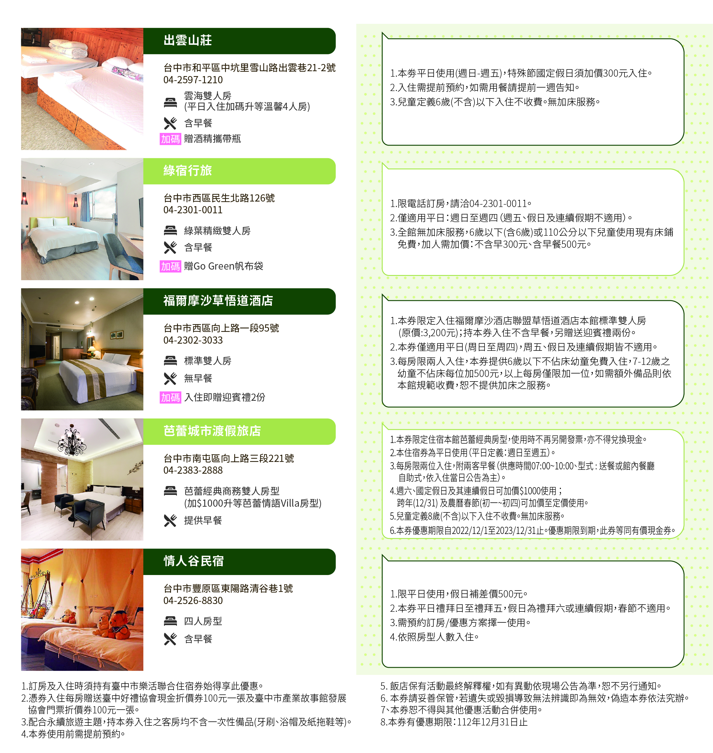 臺中市樂活聯合住宿券兌換方式 (圖片點擊可放大)