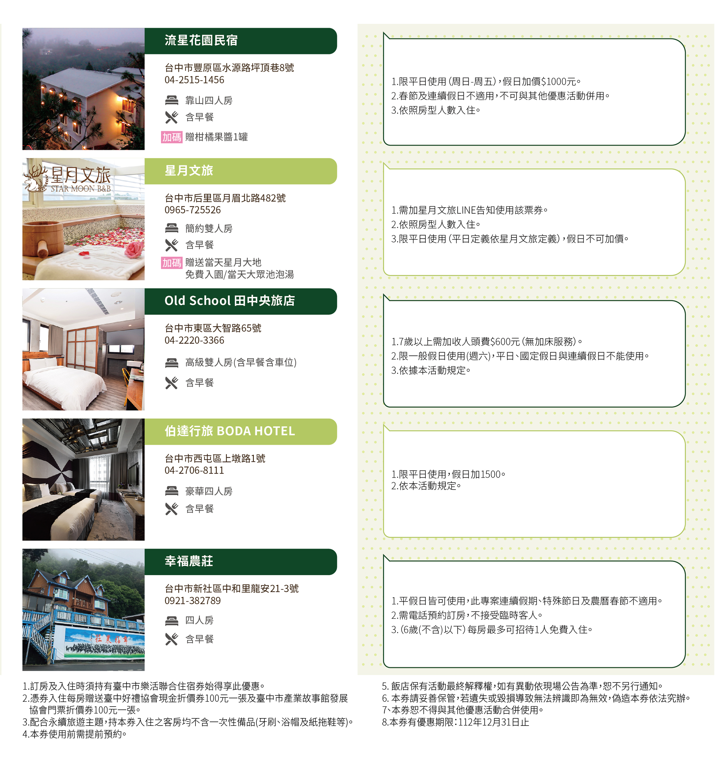 4. 入住再送:臺中市好禮協會現金抵用券$100元