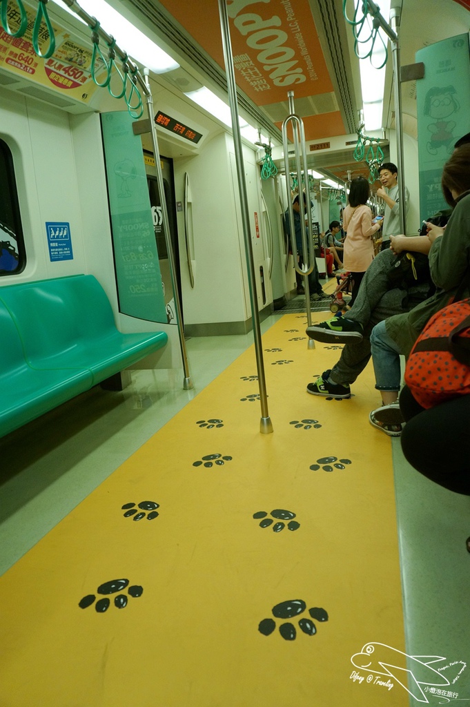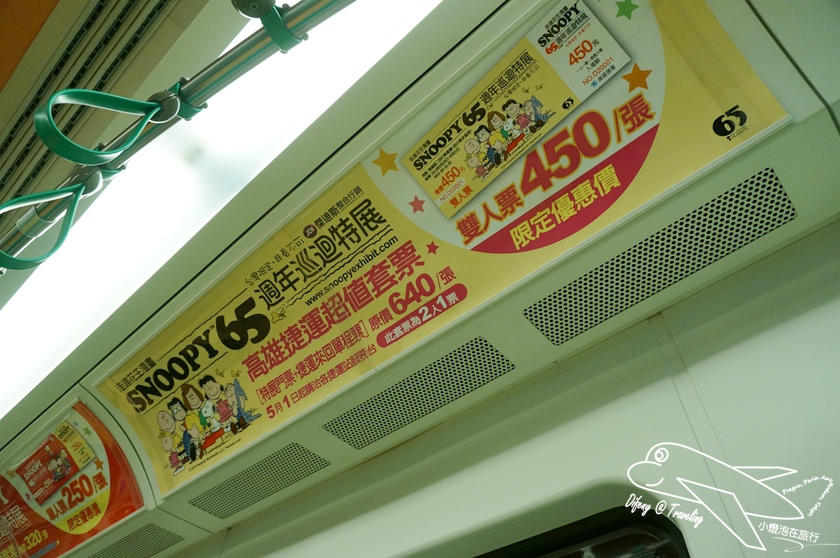 臺北捷運的圓仔車廂我沒搭到,不過snoopy高節車廂,我可是首航日就搭到囉!