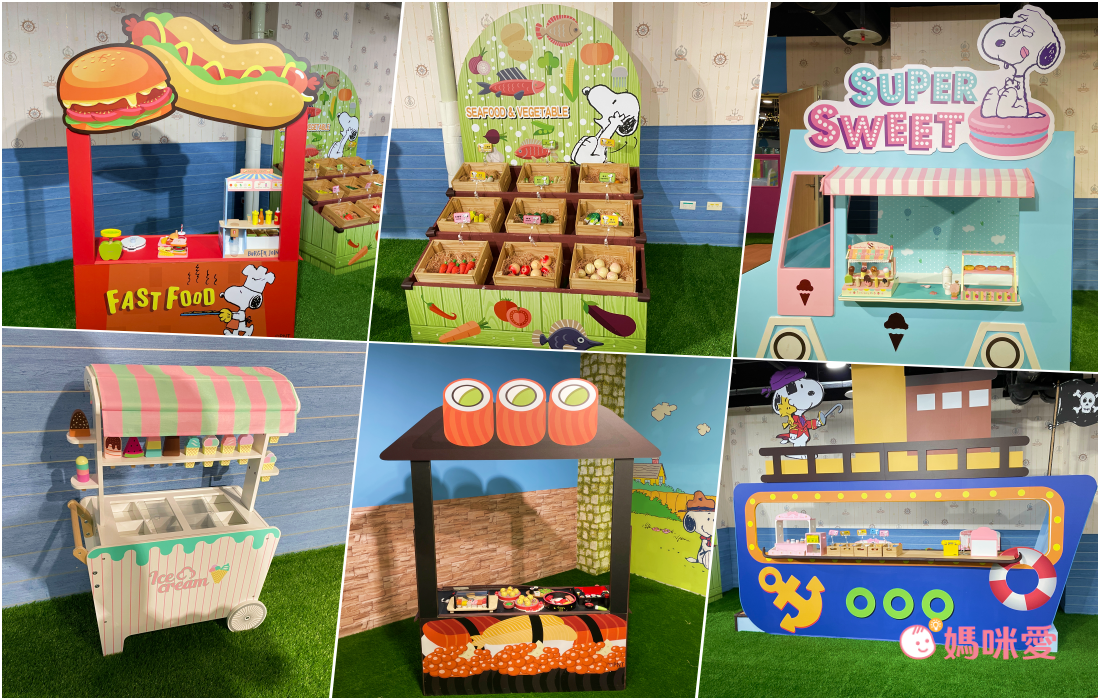 我們來訪的這天是週日,11:30有一場SNOOPY姊姊帶動唱的活動,集合地點就是這個舞台區。不得不說姊姊超級熱情的,帶動唱的時候氣氛炒得很熱,然後還有設計競賽活動,像今天看到的是請小朋友裝扮成小廚師,看哪一組夾麵包的速度最快,當下頓時有種在參加運動會的感覺,因為場邊的家長也很賣力的為小朋友加油打氣!