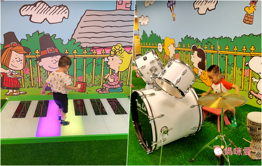 這一區我覺得最特別的是地上那個要用腳彈的鋼琴,除了聲音之外還會有五顏六色的燈光,連大人都覺得很好玩呢!