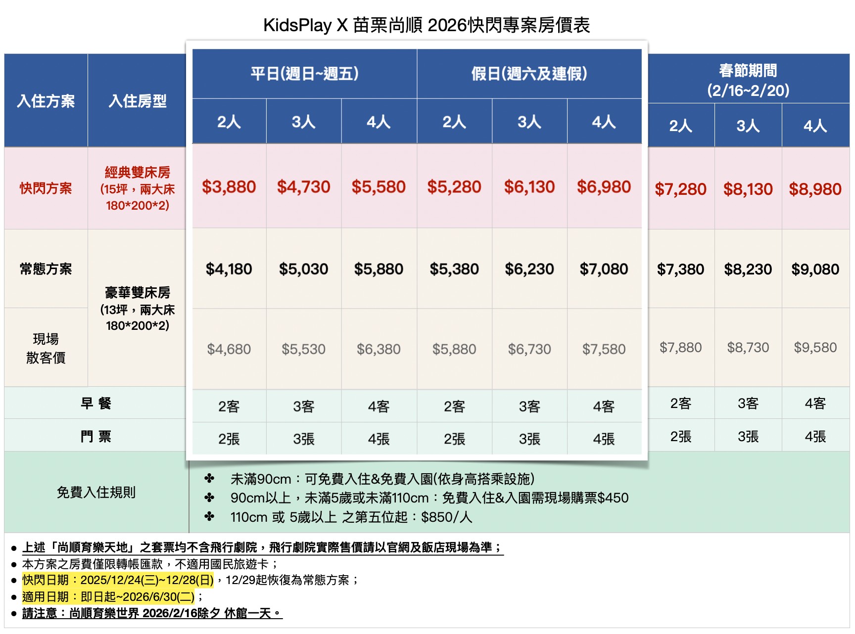 - 2026春節(2/16~2/20)$7280, 2/15為假日價
