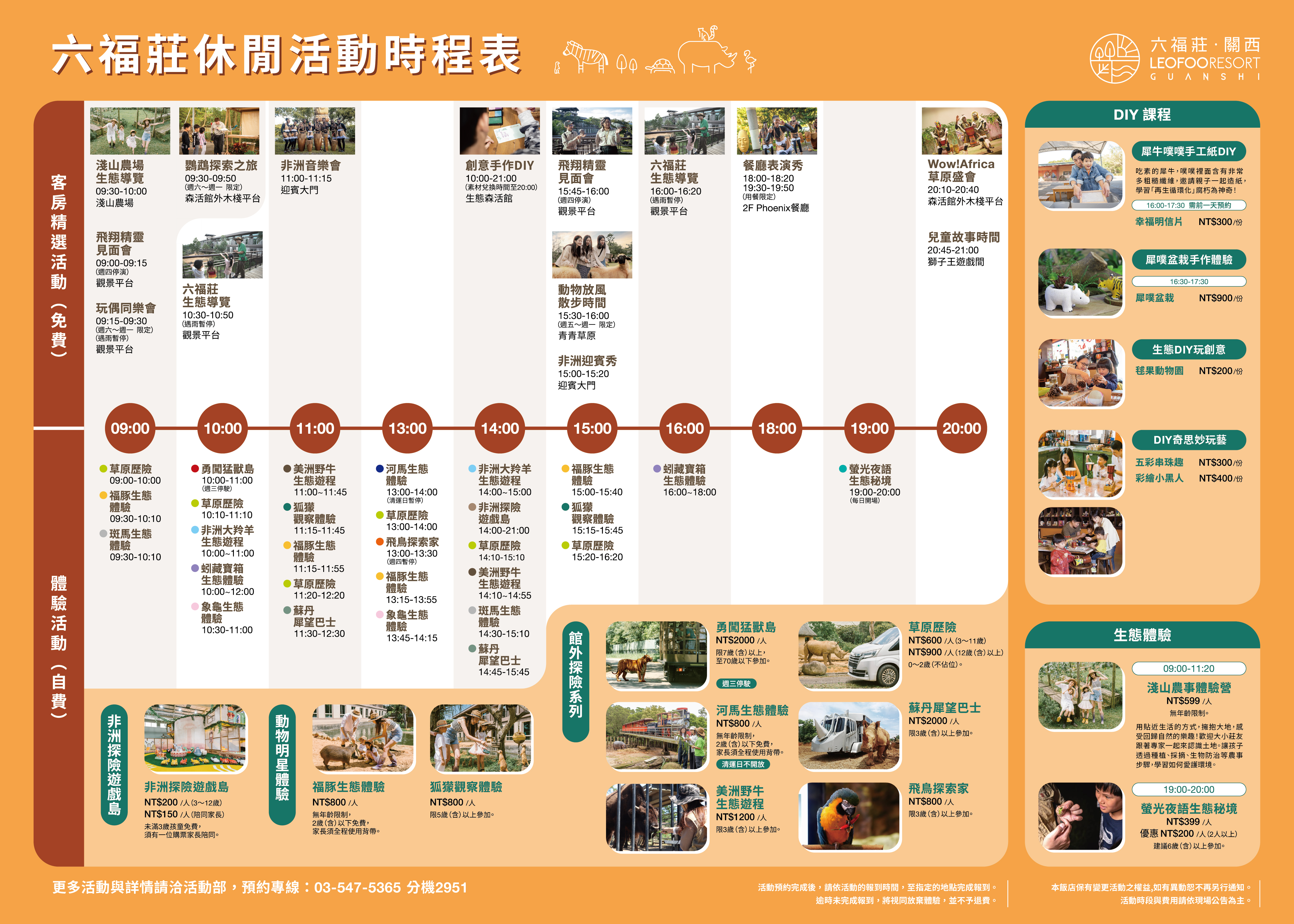 備註:需提早10分鐘至六福莊獅子王遊戲間報到
