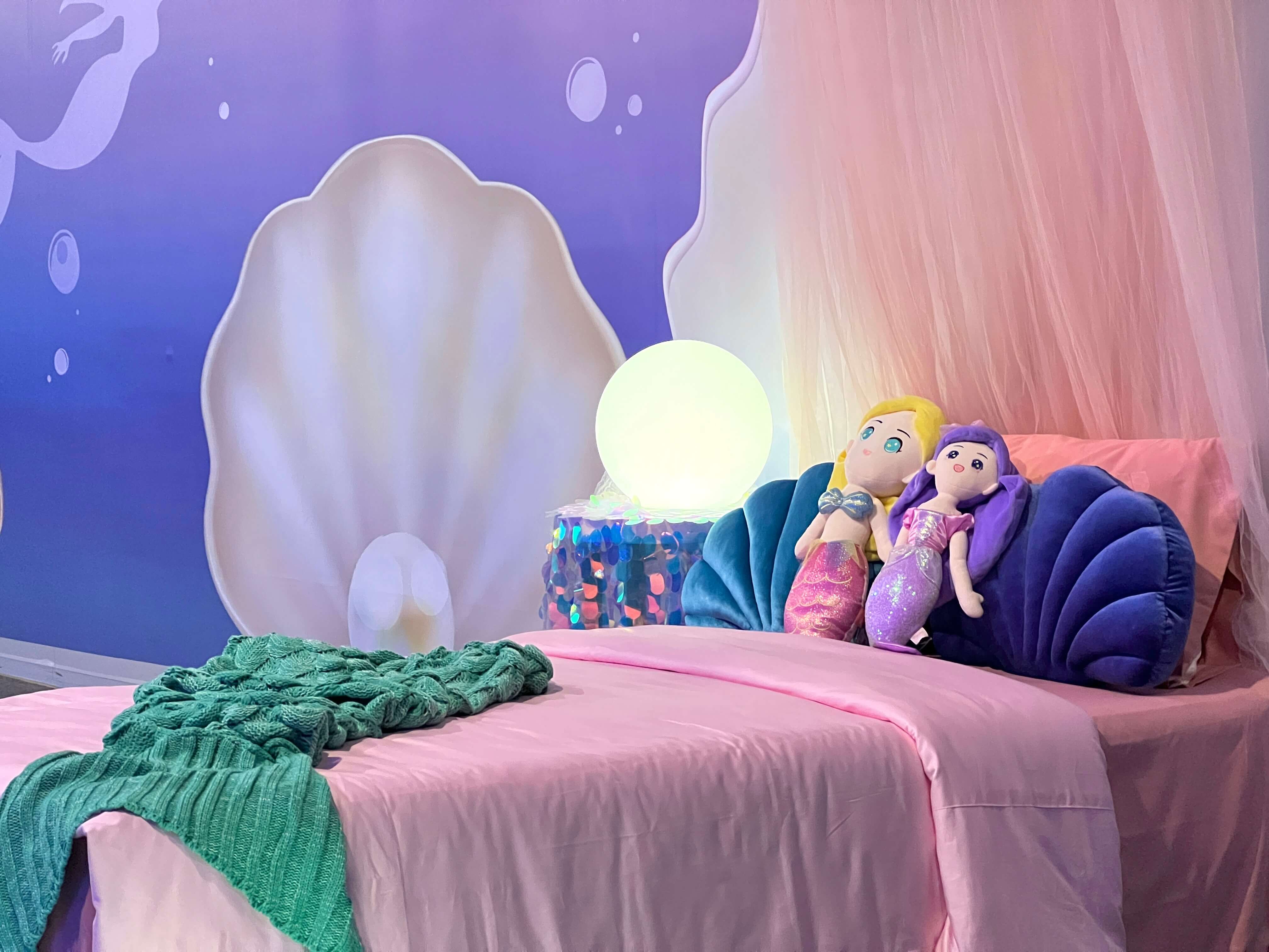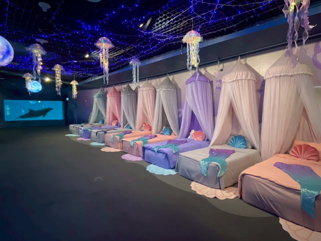 ▎睡眠區為探險島水族館,每位提供床單、枕頭、棉被一組及單人床墊一墊;