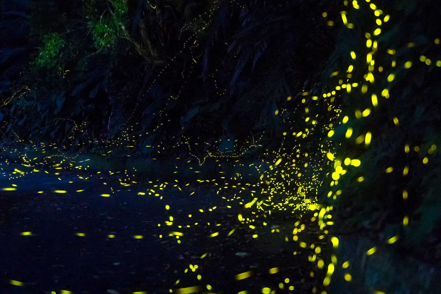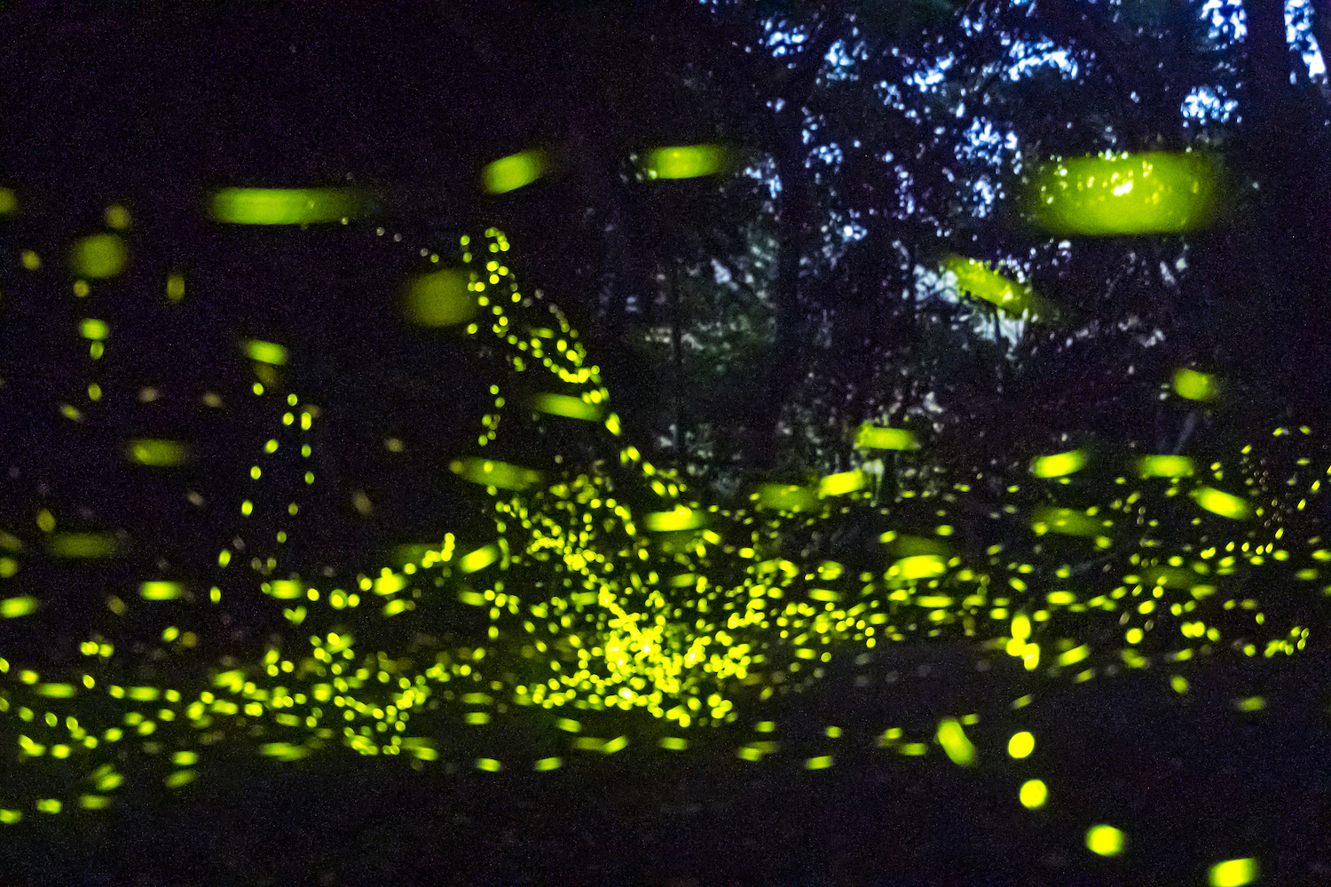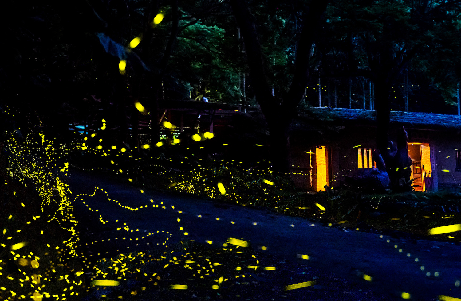 在統一時間集合後,由導覽老師帶去觀賞螢火蟲。