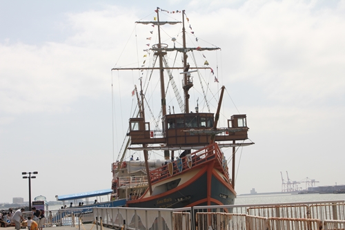 ▼帆船型遊船聖瑪利亞號,硯硯覺得蠻不錯。我和堯堯沒有搭乘,因為同一時間,我們在坐天保山大摩天輪。