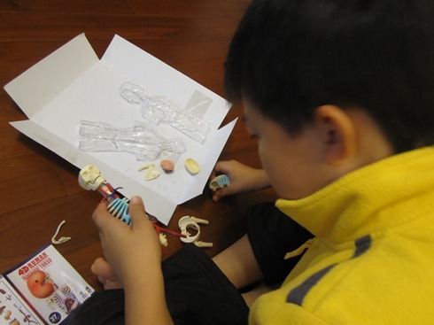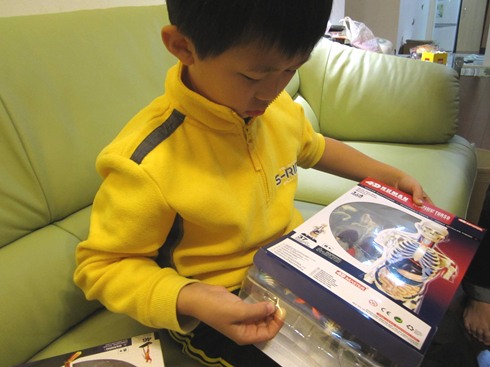 常逛自然科學博物館應該多少都會在禮品店看到類似的東西,煦煦也是在逛科博館時,看到這個他覺得很新奇的玩具。想到要放個人體解剖模型在家,我實在很怕半夜起來不小心撇見會嚇死自己,加上沒特殊理由也不想花這麼多錢在買玩具上,所以當下也就以生日再買的理由哄騙沒答應他,沒想到他真的一直記到生日那天,突然提出我曾答應的事真令人冷汗直流,看來我得遵守承諾了!