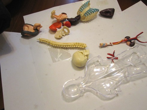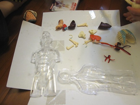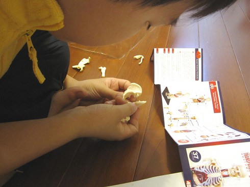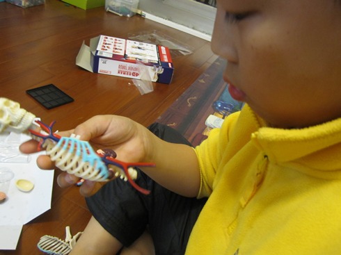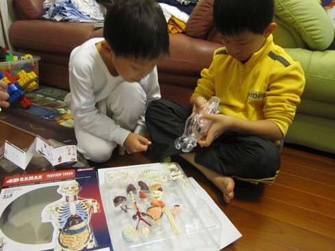 平常兩兄弟對於人體結構總有問不完的問題,也常捧著家裡的人體解構書來問我,礙於平面圖片的限制,有許多部份很難對他們解釋清楚,有了這個簡單的模型倒方便多了,從組裝的過程中自然而然對人體的結構也能有了初步的認識。