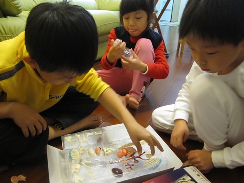(看到幾個小孩把完著心臟、大小腸....感覺真怪!)