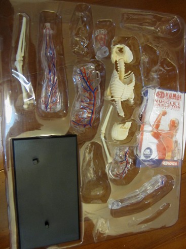這個系列的模型除了整個人體,也有單一器官的部份,煦煦挑的都是整個人體的模型,分別是「人體肌肉和骨骼模型」及「全透視半身人體模型」,一個就肌肉神經、一個就器官,兩相補足缺少的部份。