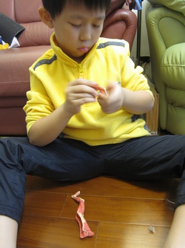 (等不及我拍照就急著把肌肉的部份取出了,還嘖..嘖...地嫌我在旁防礙他...)