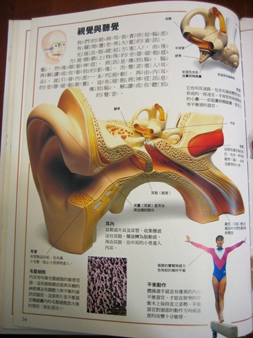 (安安很喜歡跟我研究這張耳朵的透視圖,了解他每次感冒老是引發的中耳炎是怎麼造成的。)