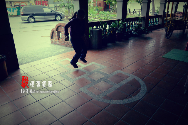 吃完飯後,休息一下,多多跑到外面去跳格子了!我想…店內裡裡外外、穿越古今中外,能與世代銜接的唯一,應該就是跳格子了吧!
