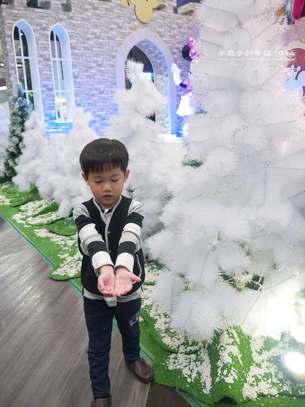 對了!每個整點都會從半空中飄下泡泡雪花哦,只要時間一到,孩子們會陷入瘋狂,每個人都想把雪握在手中,可惜泡泡一下就不見了。