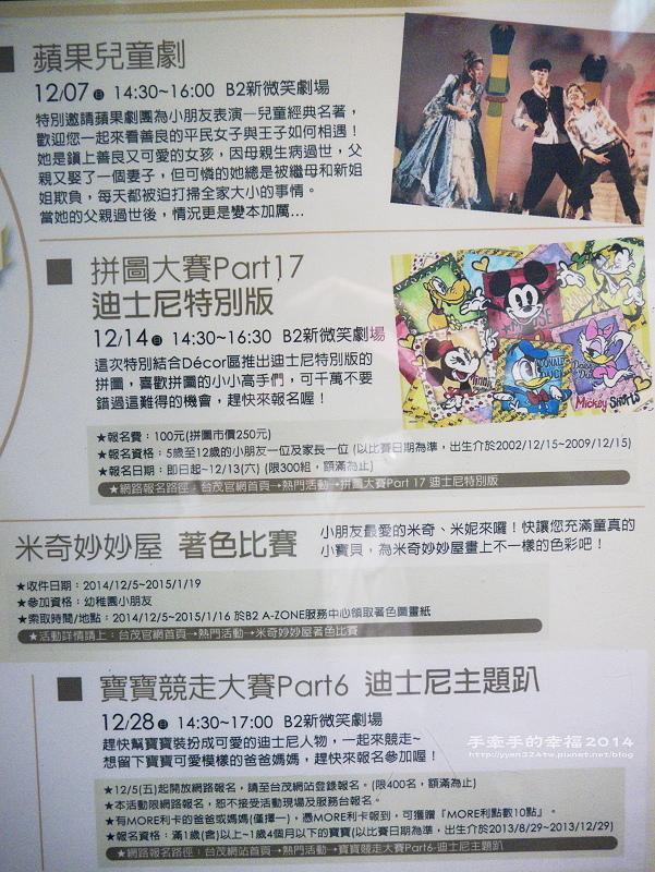 家中有學齡前的小朋友,相信對這首歌耳熟能詳。 其實我也是因明太子喜歡這類型有問有答的卡通節目,陪著他看幾次之後,才知道有米奇妙妙屋這東東。 台茂每年都會舉辦這樣的大型佈景主題活動,2012年聖誕節前夕,是我第一次帶明太子來, 當年的主題是"聖誕老公公不在家",明太子又玩又拍很開心。 2013年是粉紅芭比派對,我們也有來,不過沒時間PO文... 今年則是《米奇妙妙屋、米妮仙履奇緣夢想派對》,我們又來湊熱鬧了,而且這回明太子不再孤單一人來拍照,而是跟著好朋友一起來的哦。