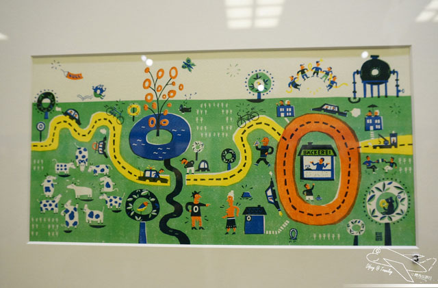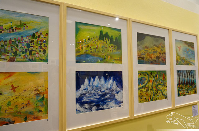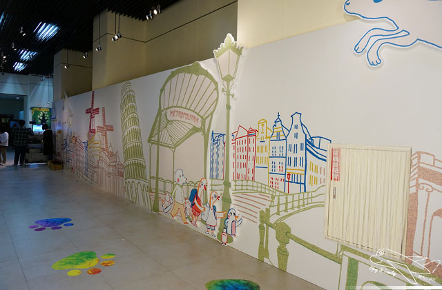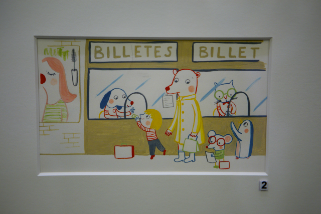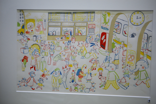 整個插畫展的主軸以「里拉的冒險」串起展覽,不只童趣,也在插畫當中描繪了地方的文化,整個細看里拉的冒險,每一處的繪圖與對於景點的描繪,看得出來作者對於世界的期待與觀察,特別是“車站”這一幅畫,對於喜歡火車旅行的我很有畫面,讓我想起了巴黎里昂車站前往亞維農Avignon的那天景象,用色與整個佈圖,非常真實地呈現~
