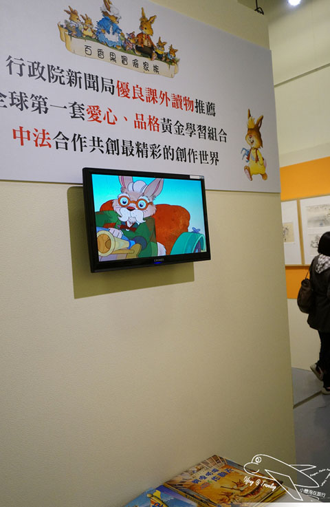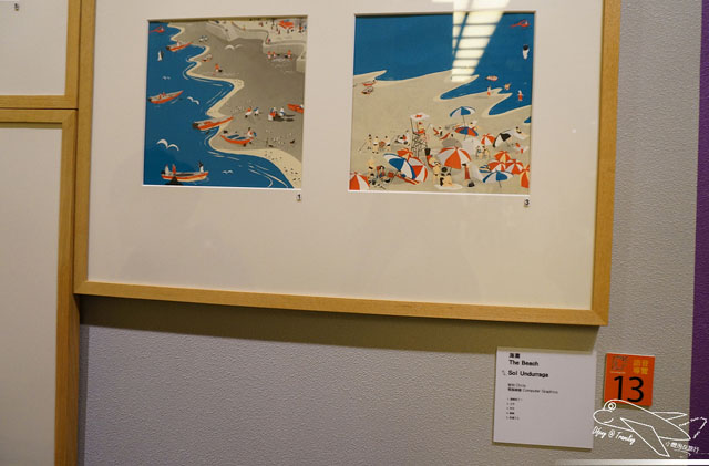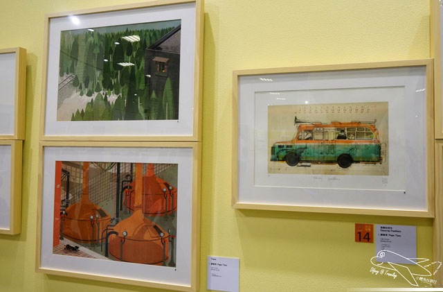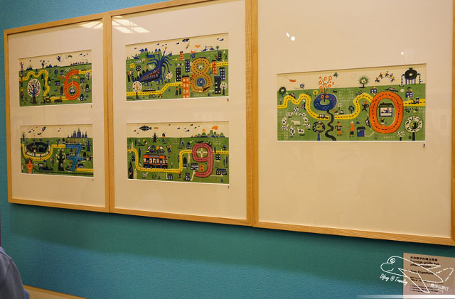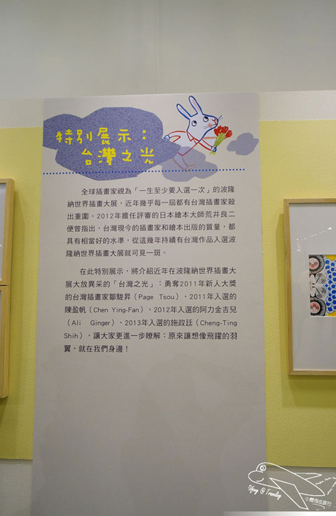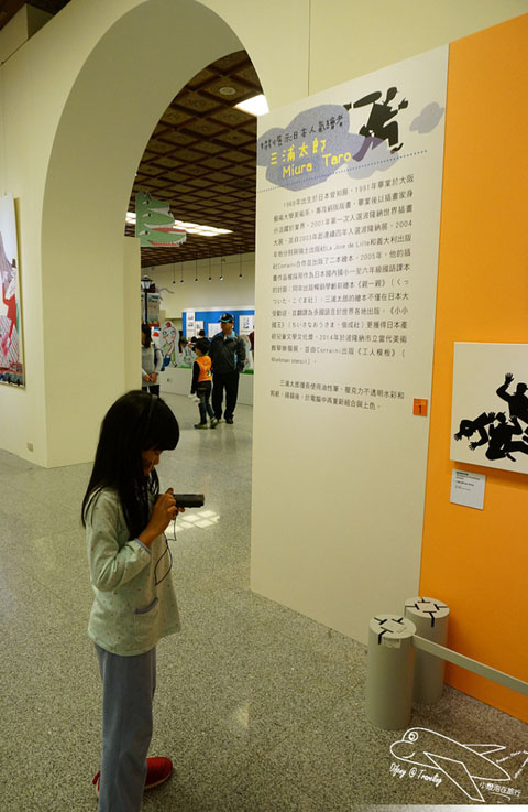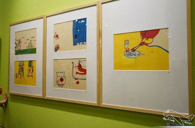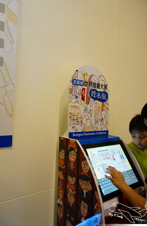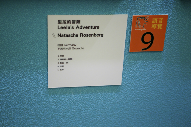 有關現場的語音導覽是需要租借的,雖然要花點小錢,但強烈建議一定要租借,不只可以聽到整個展區的大致介紹,也可以了解每個不同的插畫家所描繪不同作品的歷程以及想法,向豆哥這麼矮的小孩,的確看不太到展出的畫作,但從語音導覽機當中,不只可以看到小幅的圖畫,也可以聽到插畫作品的介紹,豆哥還一直跟我說,媽咪,它說這個作品畫了很久~之類的童言童語呢!