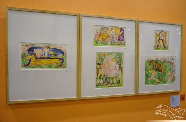 孩子對於這種沒有文字束縛的圖像,總能說出不同的故事內容,由於沒有這些束縛,所以更能天馬行空地說故事,因為這一天的參觀人潮有點多,人群恐懼症的豆哥又有點難以掌控了,所以只好抱著他我說一點故事、他說一點故事。這種親子的浪漫相處,經常成為我們家很重要的支持,