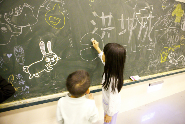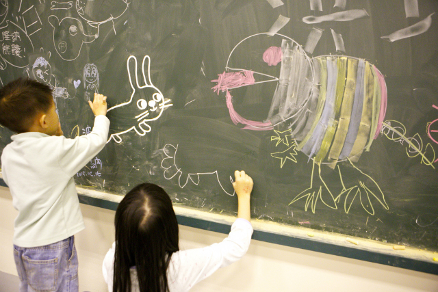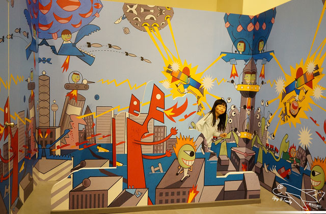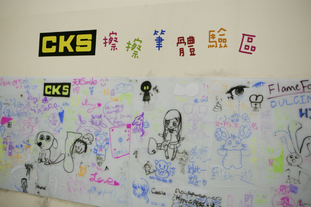 最後的體驗DIY,有一整大片的塗鴉區,讓孩子可以自由發揮,這似乎是台灣展示的手法,以前在博物館工作的時候也有這種設計,