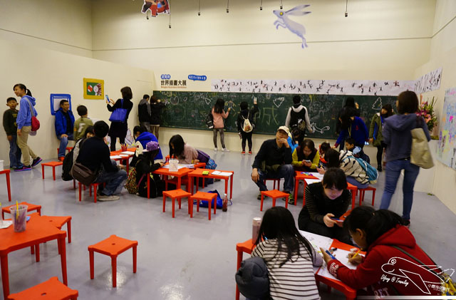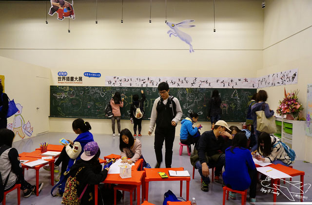 每一個人對於不同國家的喜好會有落差,某幾幅圖畫前面就會久久佇立很多人,可能也因為是寒假開始,包括教育系、美術系或者是兒童文學的學生都前來觀展,還有一些校外教學或者安親班安排的展覽參觀,我們在現場也見到很多人席地而坐就畫起來了。