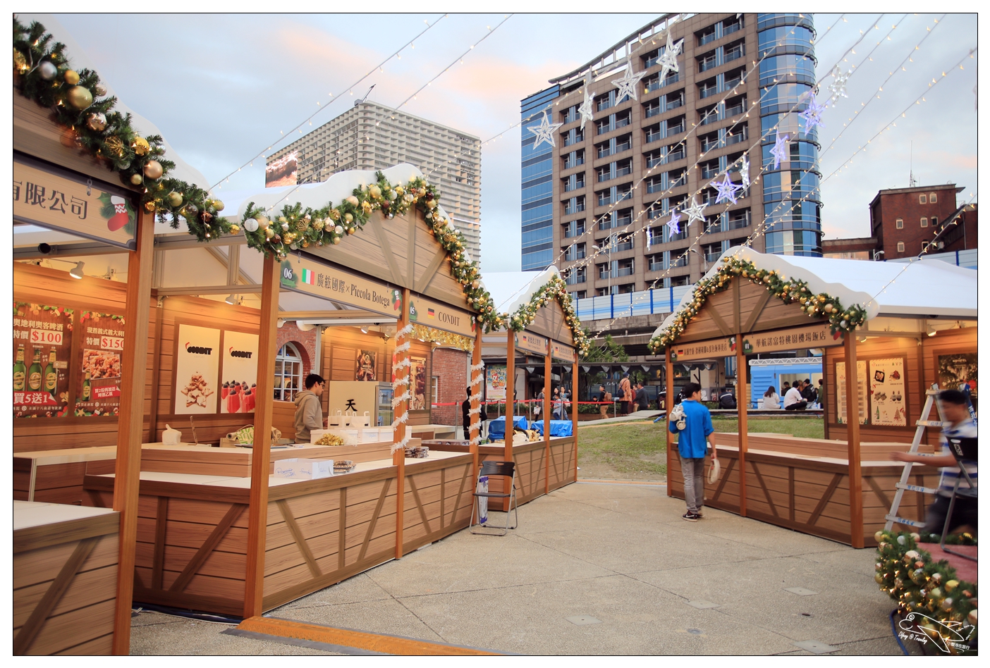 不過大家不免會跟上週開幕的信義區101耶誕市集做比較!Difeny今天12/8實際跑一趟之後,覺得在氛圍的佈置與活動的多元度來說,華山的耶誕市集更有氣氛也更值得去參與喲!今天攤位也都還在做最後趕工,只能讓大家看到攤位空景以及彩排的模樣!但光是看這準備最後一夜的氛圍,就讓人更加期待明天的開幕慶祝了!