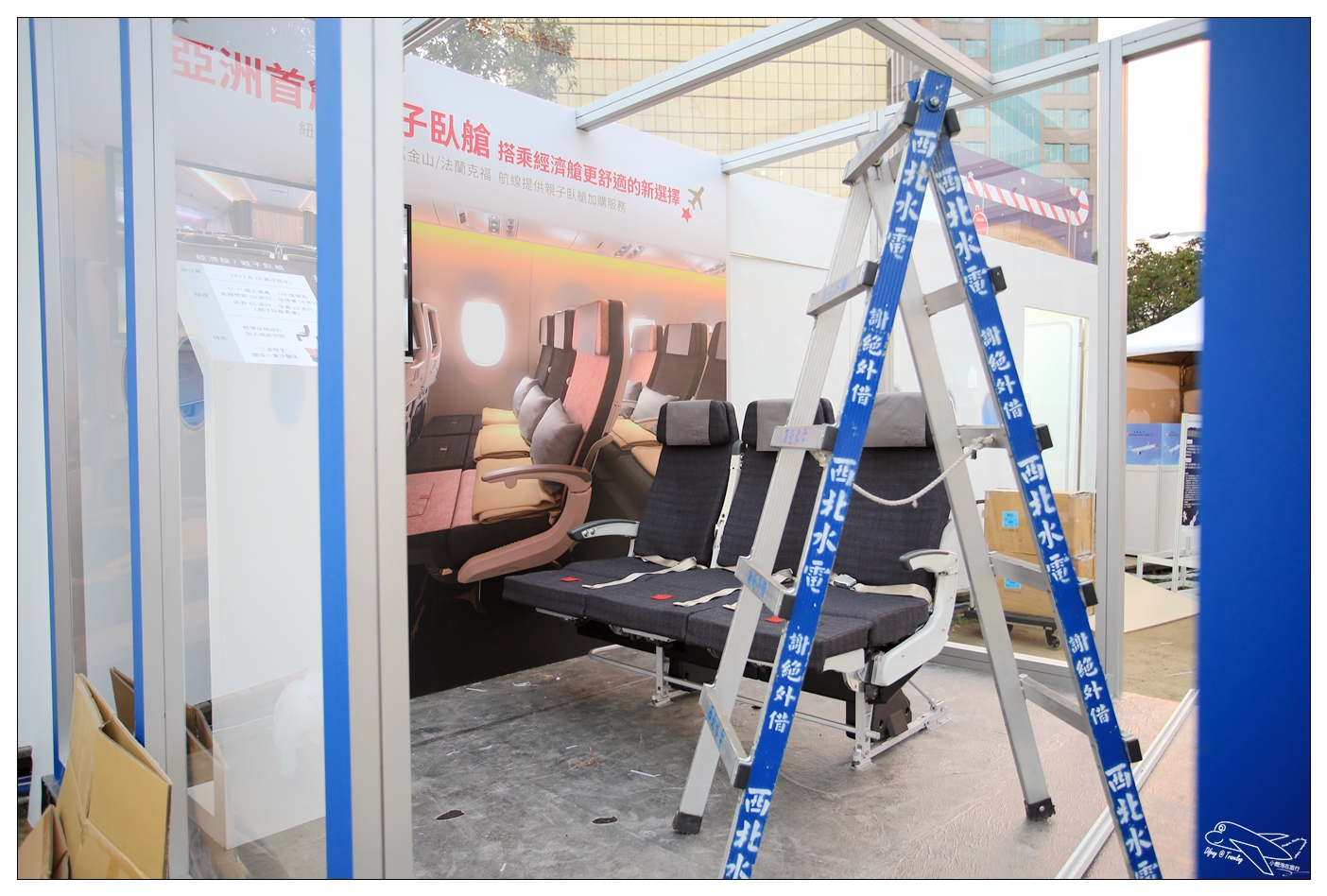 也由於是華航辦的活動,所以這裡也有華航A350的VR體驗以及親子臥艙的體驗!不過官網上的預約人次已經都預約完了,只能現場排隊領號碼牌囉!