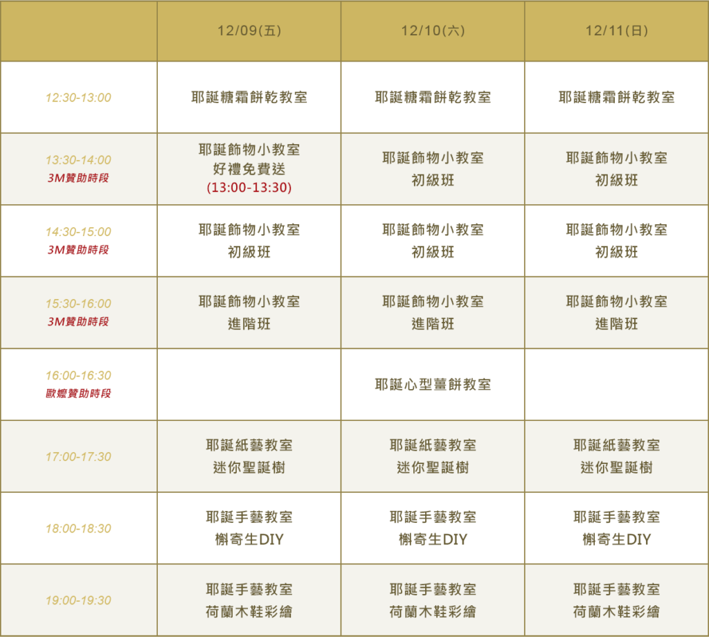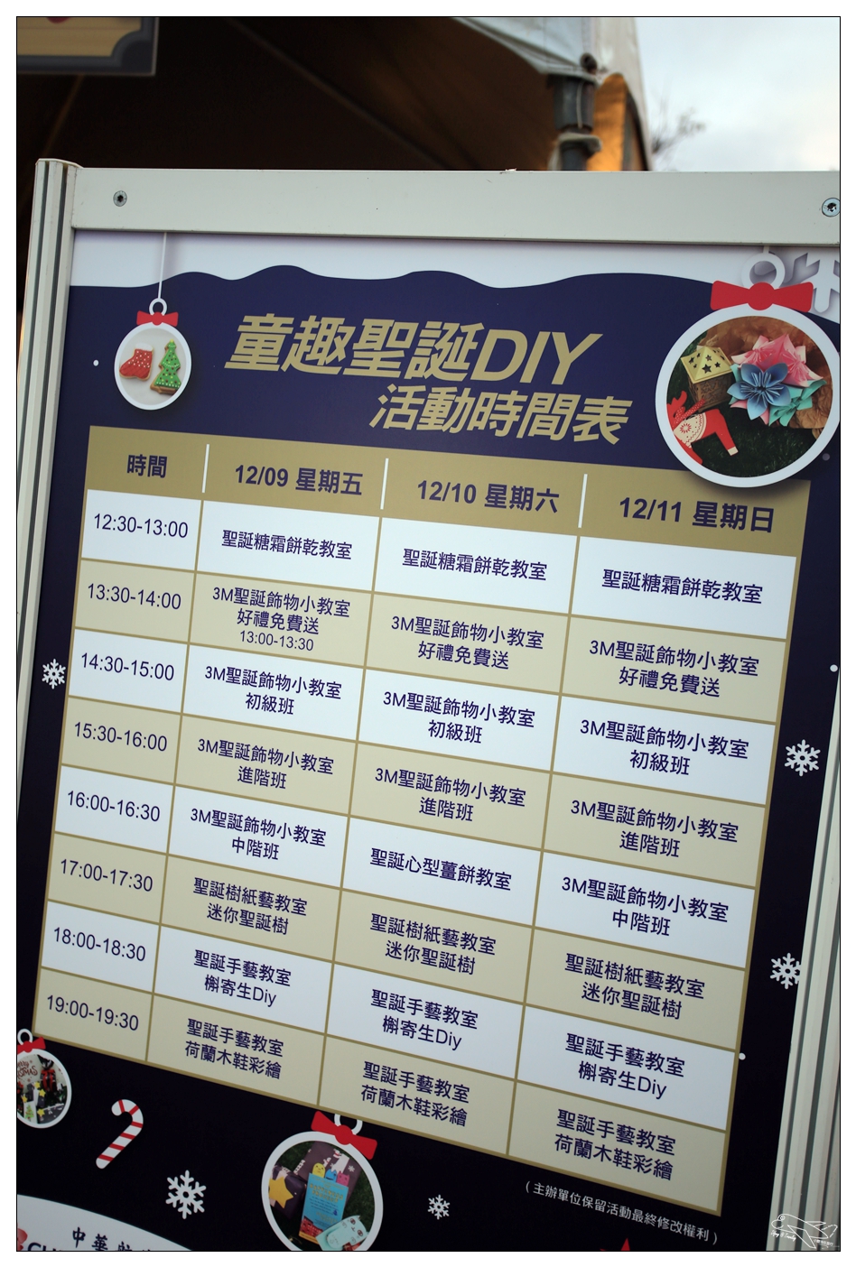 首先是親子DIY區,連續三天的每個整點都會有動手做的活動,有餅乾、薑餅屋、飾品、彩繪木鞋等等的活動!這個讓我超想帶兩小去看看啊!