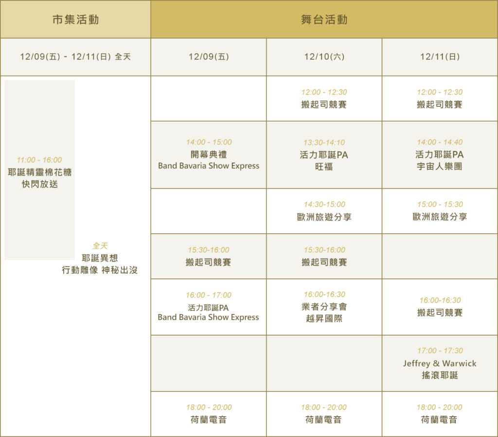 喜歡活動的朋友,也一定別錯過三天的重要活動,像是荷蘭市場的搬起司競賽、歐洲旅遊分享、還有隨時可能會出現的聖誕老公公、以及耶誕精靈的棉花糖放送活動,都很值得期待喲!